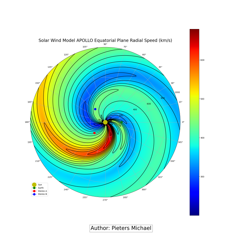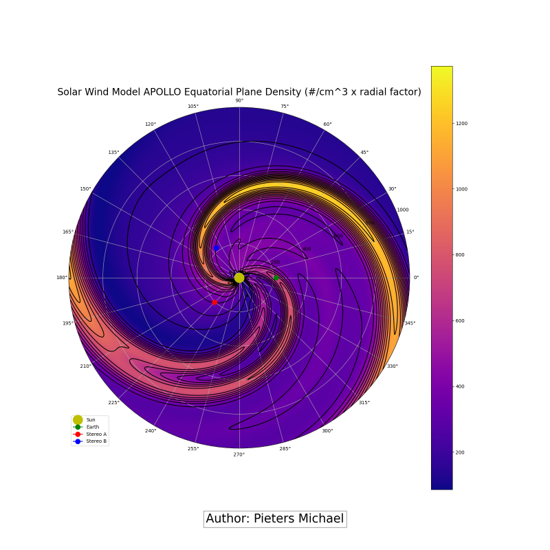 Simulation of Solar Wind quantities for Carrington Rotation 2196 by making use of my APOLLO model computer code; which is a remastered version completely rewritten in Julia. Initial conditions were generated from: